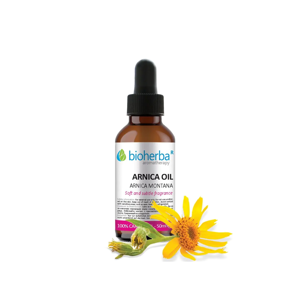Маслото от арника (Arnica Montana Oil) е известно с мощните си успокояващи и регенериращи свойства. То се добива от цветовете на растението арника, богато на биоактивни вещества, които благоприятстват кожата, косата и ноктите. Способността му да подобрява микроциркулацията го прави ценен помощник при масаж и при различни кожни раздразнения. Отличава се с лека текстура, която попива бързо и оставя усещане за свежест. Редовната му употреба може да спомогне за по-бързото възстановяване на увредените участъци и за постигане на по-здрав и сияен вид. Благодарение на своите антиоксидантни и противовъзпалителни свойства, маслото от арника често се включва в козметични формули за интензивна грижа.