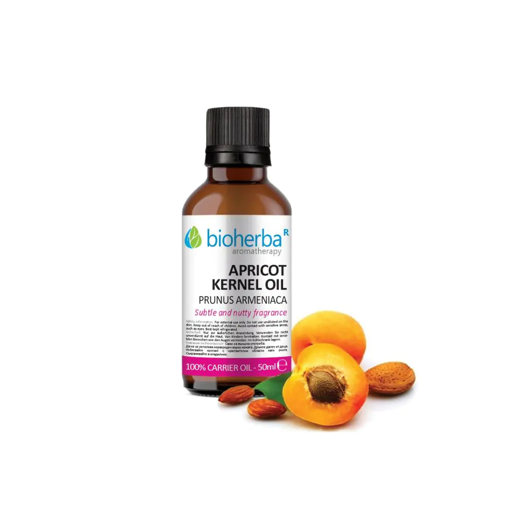 ✓ В състава на това деликатно масло влизат витамини A, E, F, омега 6 и 9 и витамин B17 в най-чистия си вид в природата. Наличието им подобрява обменните процеси и забавя процесите на стареене на кожата. Маслото от кайсиеви ядки ускорява клетъчната обмяна и стимулира образуването на колаген. Осигурява естествена слънцезащита за кожата. Може да се използва при изгаряния и за лечение на екземи, лишеи, защото подпомага бързото възстановяване на кожата. Използвано локално, маслото от кайсиеви ядки овлажнява сухата кожа и изглажда петната, бръчките и фините линии, характерни за зрялата кожа. Маслото от кайсия има високо съдържание на ненаситени мастни киселини и това е причината то да има лека, немазна текстура. Комбинацията от олеинова, линолова и линоленова киселина помага за облекчаване и намаляване появата на акне.