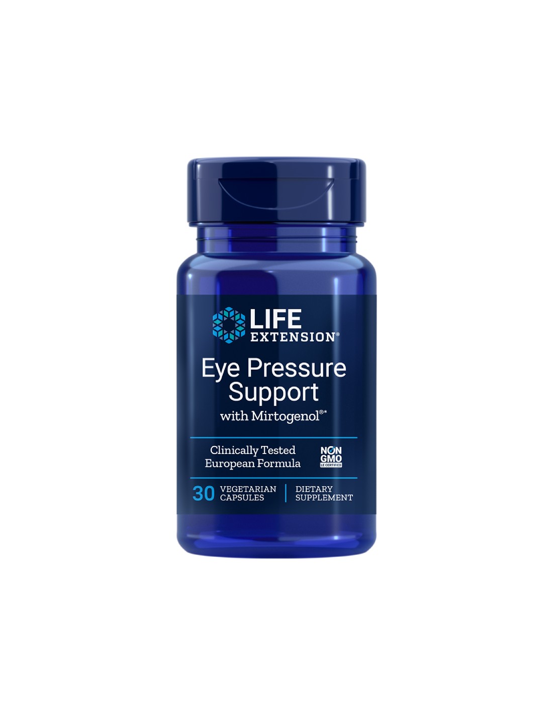 Eye Pressure Support with Mirtogenol® е хранителна добавка на Life Extension, създадена специално да поддържа здравето на очите и да регулира налягането в тях. Формулата включва два мощни растителни екстракта – Mirtoselect® от европейска боровинка (Vaccinium myrtillus L.) и Pycnogenol® от кората на френски морски бор (Pinus pinaster). Тези съставки се считат за ключови за поддържането на нормалното зрение.