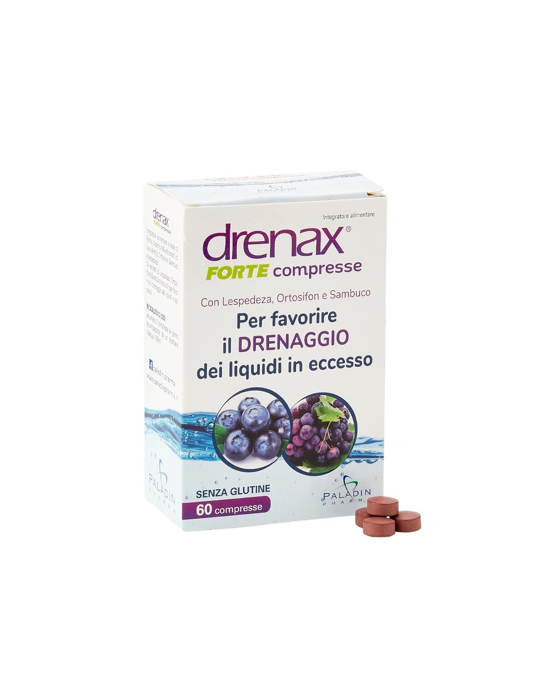 Drenax® Forte Paladin Pharma е натурална формула против задържане на течности, базирана на екстракти от леспедеза, черен бъз, гроздово семе, ортосифон и синя боровинка. Допълнително обогатеният комплекс с рутин и витамин B6 подпомага поддържането на здравословно телесно тегло и нормалния обем на течности в организма.