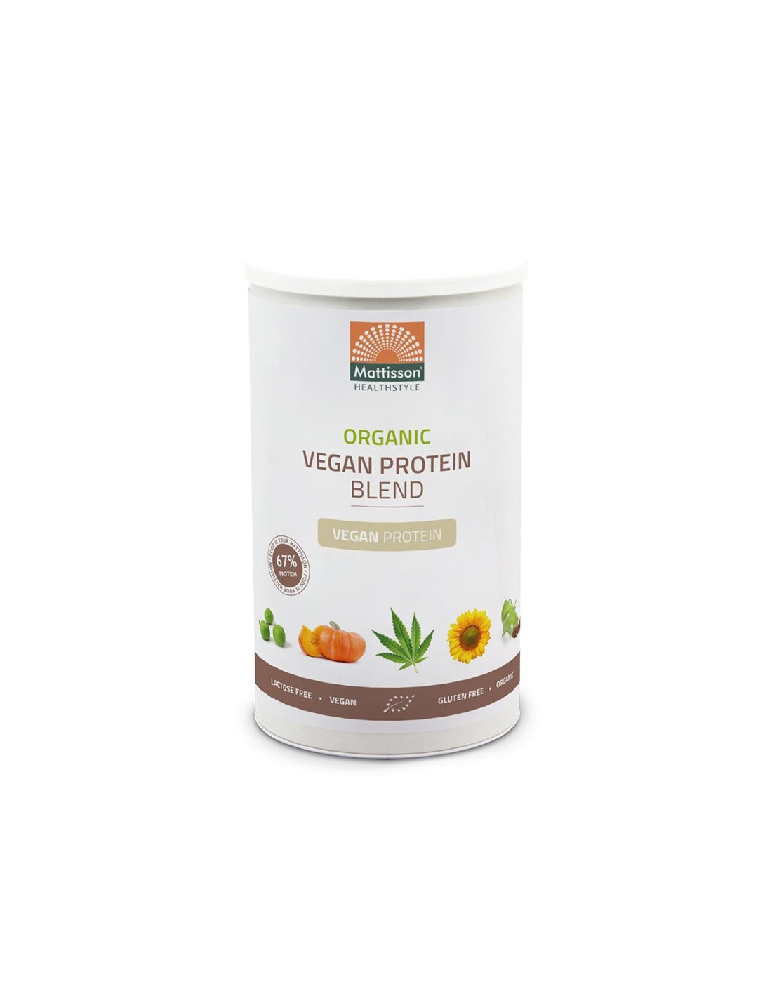 Organic Vegan Protein Blend Powder на Mattisson е висококачествен растителен протеин с приятен орехов вкус, подходящ за вегани и вегетарианци. Био протеиновата смес на прах от грах, ориз, коноп, бадем, тиква, саша инчи и слънчоглед се грижи за здравето на костите и допринася за растежа и поддържането на мускулна маса. Продуктът съдържа всички основни аминокиселини, които зареждат тялото с енергия, подобряват ефективността от тренировките и подпомагат процеса на отслабване.