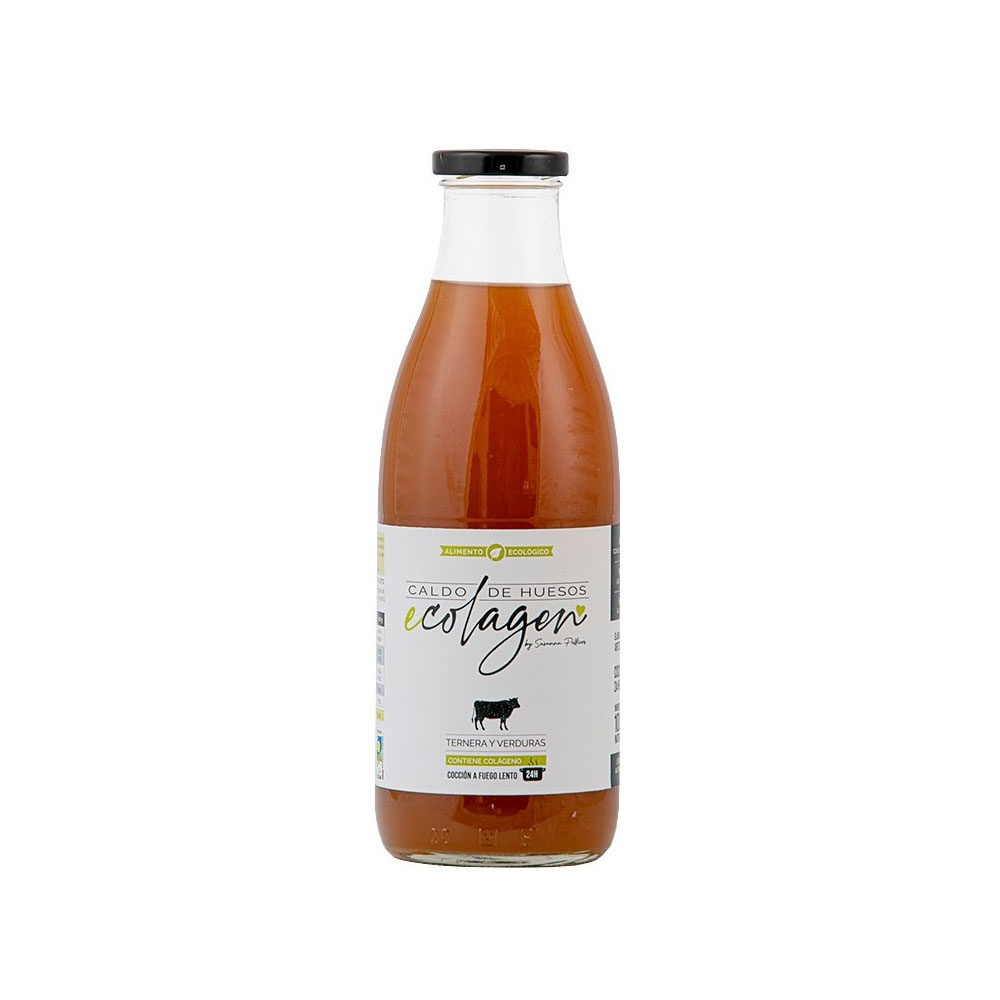 Caldo de Huesos de Ternera con sal Ecologico Ecolagen е произведен по оригинална рецепта, без съдържание на консерванти, алергени и ГМО. Костният бульон от свободно пасящи животни се извлича чрез технология на бавно варене в продължение на 24 часа, която осигурява висока ефективност и съхраняване на полезните свойства на съставките. Той е обогатен със зеленчукова комбинация от лук, праз, морков и дафинов лист от органично земеделие, ябълков оцет и хималайска сол. Продуктът е подходящ за самостоятелен прием или съчетаване с шейкове, смутита и традиционни ястия.