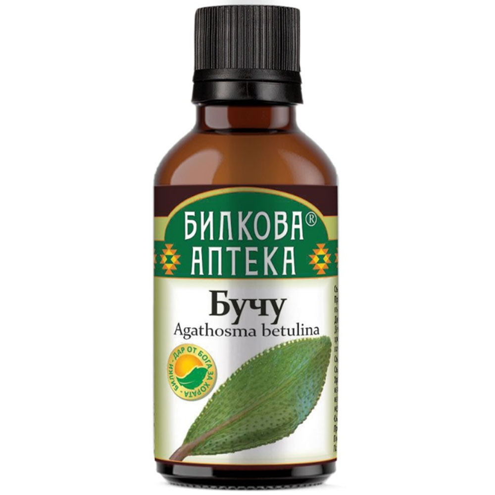 Тинктура Бучу Лист е натурален продукт, който подпомага здравето на бъбреците, пикочните пътища и цялостната детоксикация на организма. Листата на бучу са богати на флавоноиди, етерични масла и антиоксиданти, които действат като естествен диуретик, спомагащ за изчистване на токсините и намаляване на задържането на течности. Продуктът е известен със своите противовъзпалителни и антимикробни свойства, които облекчават инфекции на пикочните пътища и предотвратяват тяхното повторение. Тинктурата също така насърчава нормалната функция на бъбреците и помага за регулирането на водния баланс в организма. Освен това тя подпомага храносмилането и може да има леко ободряващ ефект, благодарение на освежаващия си аромат. Лесна за употреба, тинктурата е изцяло натурална, без изкуствени добавки или консерванти. Идеална е за хора, които искат да подкрепят здравето на пикочната си система и да подобрят общото си състояние с помощта на природата.