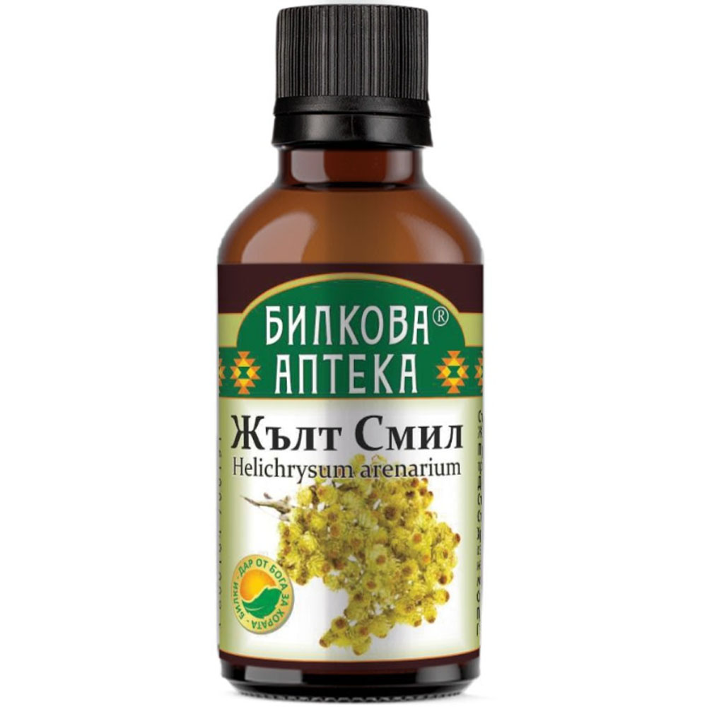Тинктура Жълт Смил (Безсмъртниче) е натурален продукт, който подпомага здравето на черния дроб, жлъчния мехур и храносмилателната система. Екстрактът от жълт смил е богат на флавоноиди, антиоксиданти и биологично активни съединения, които стимулират детоксикацията на черния дроб и насърчават здравословното производство на жлъчка. Продуктът подпомага разграждането на мазнините и облекчава симптоми като тежест и подуване след хранене. Тинктурата има противовъзпалителни свойства, които спомагат за успокояване на стомашно-чревния тракт и подобряване на метаболизма. Освен това тя укрепва имунната система и подпомага общото здравословно състояние. Лесна за употреба, тинктурата е изцяло натурална, без изкуствени добавки или консерванти. Идеална е за хора, които искат да поддържат здравето на храносмилателната и чернодробната система по естествен начин.
