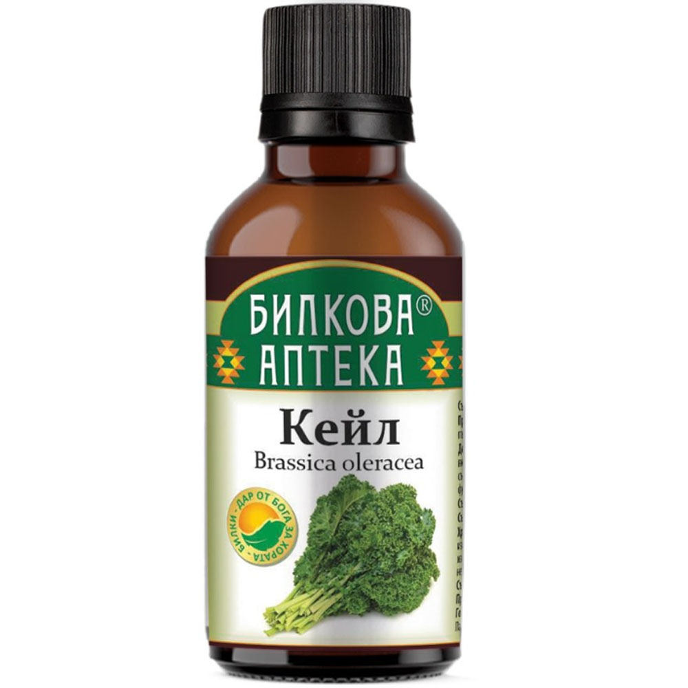 Тинктура Кейл е натурален продукт, богат на витамини А, С и К, антиоксиданти и минерали, които подпомагат имунната система и поддържат здравето на костите и кожата. Тя съдържа концентриран екстракт от кейл, който спомага за детоксикация на организма и подобряване на храносмилането. Тинктурата е лесна за употреба, подходяща за ежедневен прием и допълва балансирания начин на живот. Подходяща е за вегани и не съдържа изкуствени добавки. Благоприятства за намаляване кръвното налягане, има съдово и сърцепредпазващо влияние. Подпомага правилното функциониране на черния дроб.