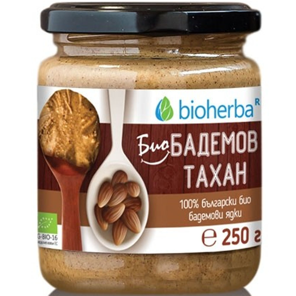 Бадемовият тахан на Биохерба е чиста натурална паста от смлени бадемови ядки, без никакви добавки. Таханите се произвеждат по стара българска рецепта. Те съхраняват ценните съставки на бадемите – калций, желязо, цинк, фибри, белтъчини, мононенаситени мазнини и витамини от В-групата. Бадемовите ядки са мощен антиоксидант, изключително богати на вит. Е.