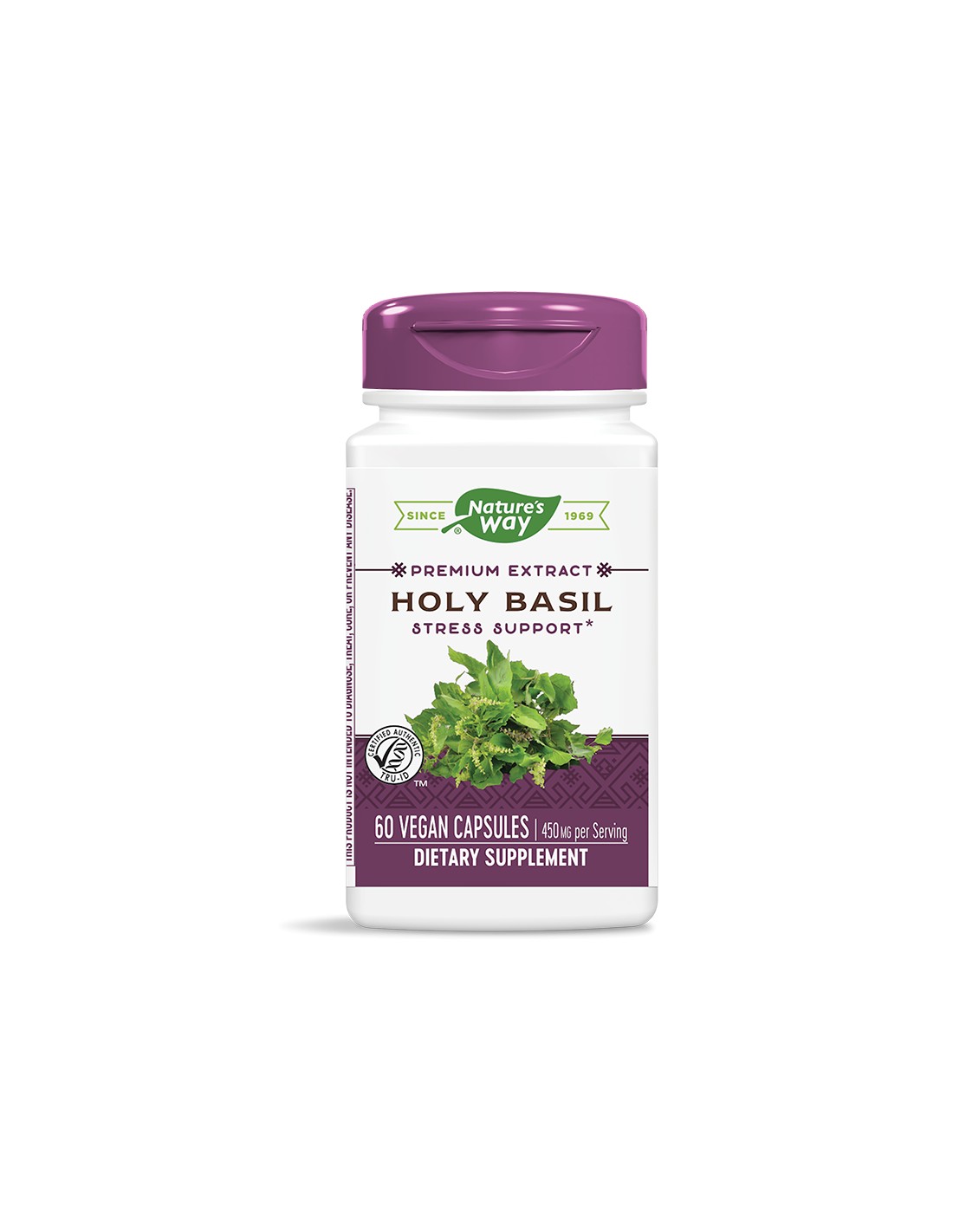 В Аюрведичната медицина свещения босилек е познат като Тулси, което означава „несравнимия“. Екстрактът от свещен босилек (Ocimum sanctum) е стандартизиран до 2.5% урсолова киселина. Той се използва в традиционната индийска медицина като адаптоген поради ефекта си да връща в норми нивата на стреса. Нашият свещен босилек е внимателно тестван и произведен според стандартите за сертифицирано качество.