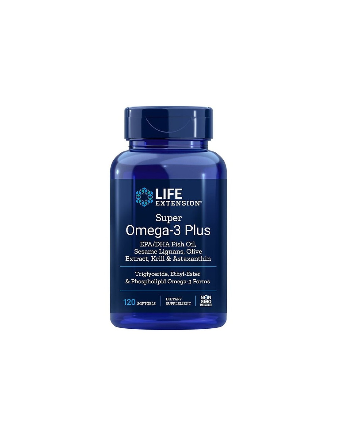 Супер Омега-3 + Крил, Астаксантин, лигнан от сусам и екстракт от маслина,120 софтгел капсули е хранителна добавка на Life Extension, САЩ. Формулата допринася за нормалното функциониране на зрителната, мозъчната и сърдечно-съдовата системи.